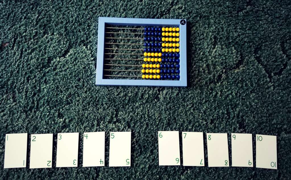 Find the Quotients game is especially fun because you get to divide numbers on the AL Abacus. Grab the abacus and ask your child to enter the number twelve on it.