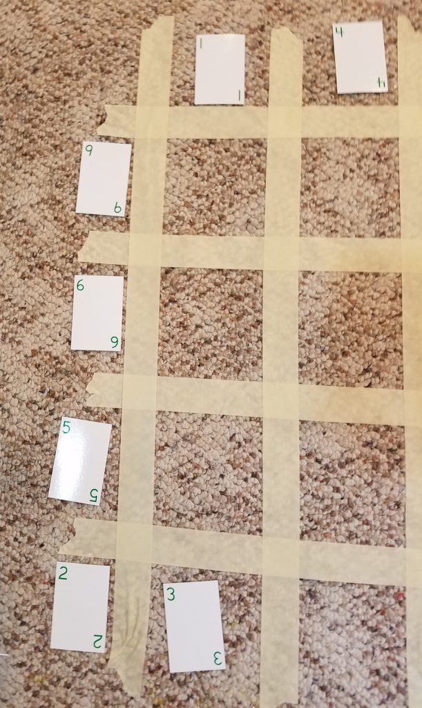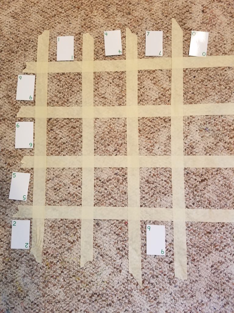 *Helpful hint: You can create a grid from masking tape for the younger children to help keep their rows and columns straight.