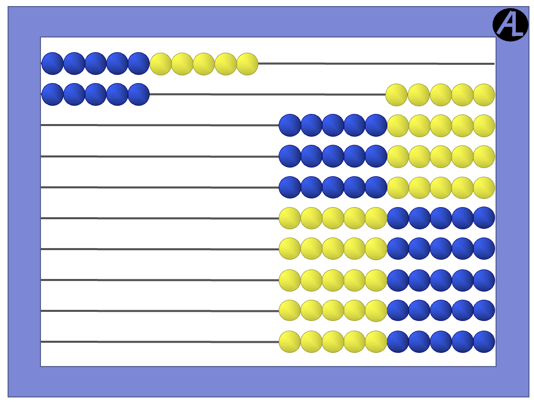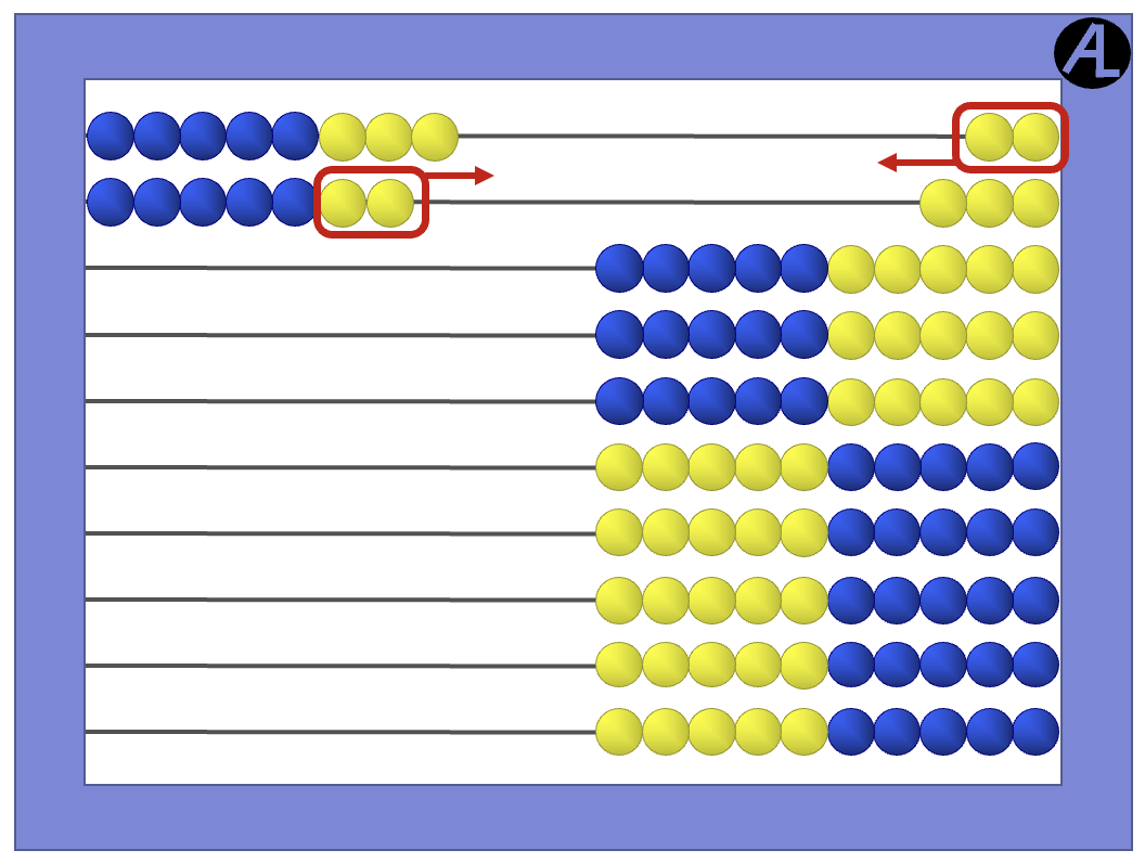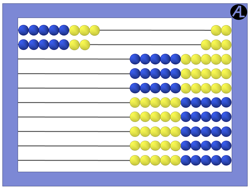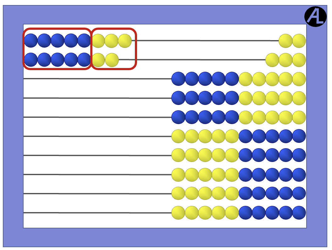 Given the grouping of the abacus beads by 5s and 10s, it is easy to see 8 as 5 & 3 and to see 7 as 5 & 2.