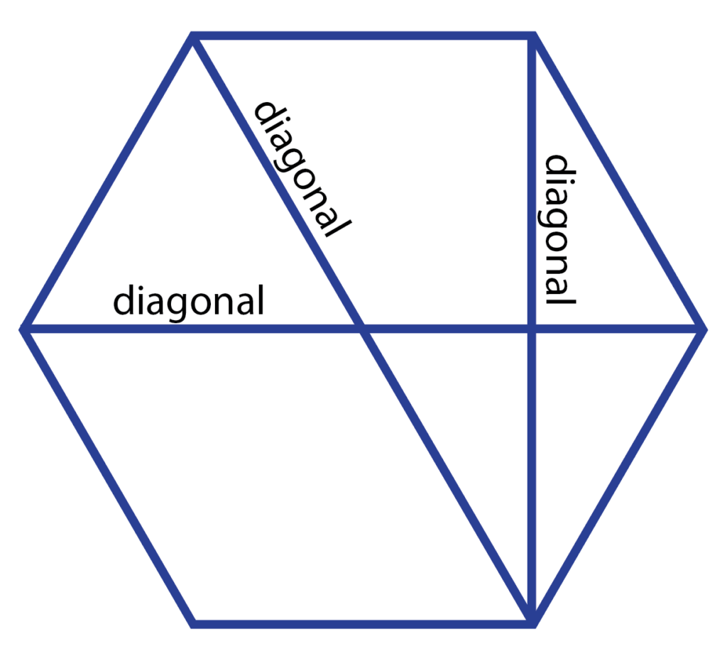 Contrast that with the mathematical definition of a diagonal: a line in a polygon (a closed figure with straight lines) drawn between any two non-adjacent (not next to each other) vertices (points). Such a line could be horizontal or vertical.
