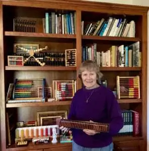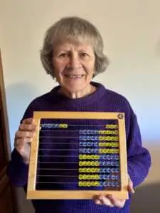 This is one of her very first designs for the Cotter Abacus. Would you believe that Dr. Cotter made the first 200 abacuses at her kitchen table?