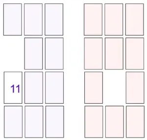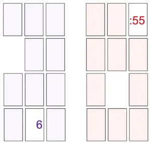 The second color deck becomes the stock; the hour cards in one pile and the minute cards in a second pile.