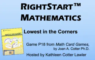 The Lowest in the Corners game is a game of strategy. It is fun! This is game P18 from the Math Card Games book. You will need the Multiplication