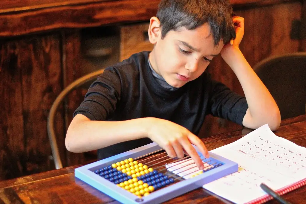 The primary learning tool is the Cotter Abacus, a specially designed two-sided abacus that is both kinesthetic and visual. The Cotter Abacus (AL Abacus) is grouped in fives and tens for quick recognition of quantities. The second side of the Cotter Abacus (AL Abacus) teaches place value to the thousands. Children develop visual strategies as they use this manipulative.