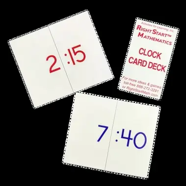Clock card deck is a smaller deck measuring 5 1/2 cm X 3 cm. Cards used to play games from the Math Card Games book.