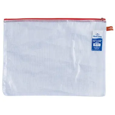 Made from high quality see-through vinyl with mesh webbing to create a strong and functional kit bag. ¾” gusset, zippered top. 12″ x 16″. Great for storing homeschool supplies.
