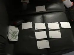 We played this game, Lowest in the Corners, game P18 in the Math Card Games book, with four people, ages 9 to adult. At first, I thought it